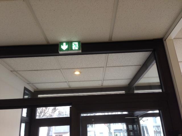 L'éclairage de sécurité a été réalisé au dessus de chaque issue de secours et bifurcation dans les couloirs.